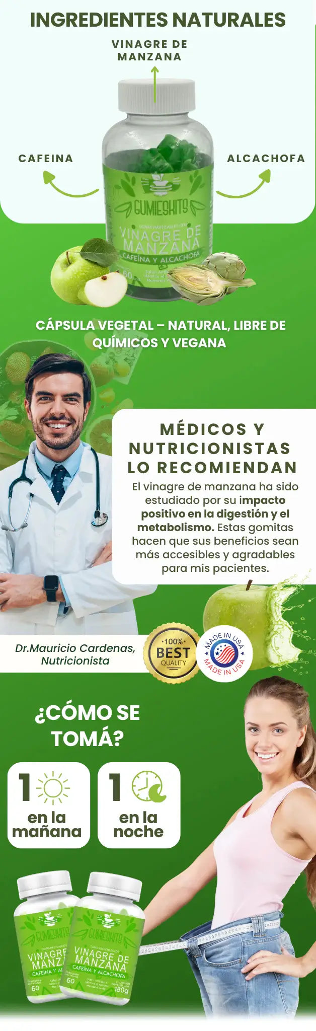 Formulado con vinagre de manzana, tradicionalmente utilizado para apoyar la salud digestiva.