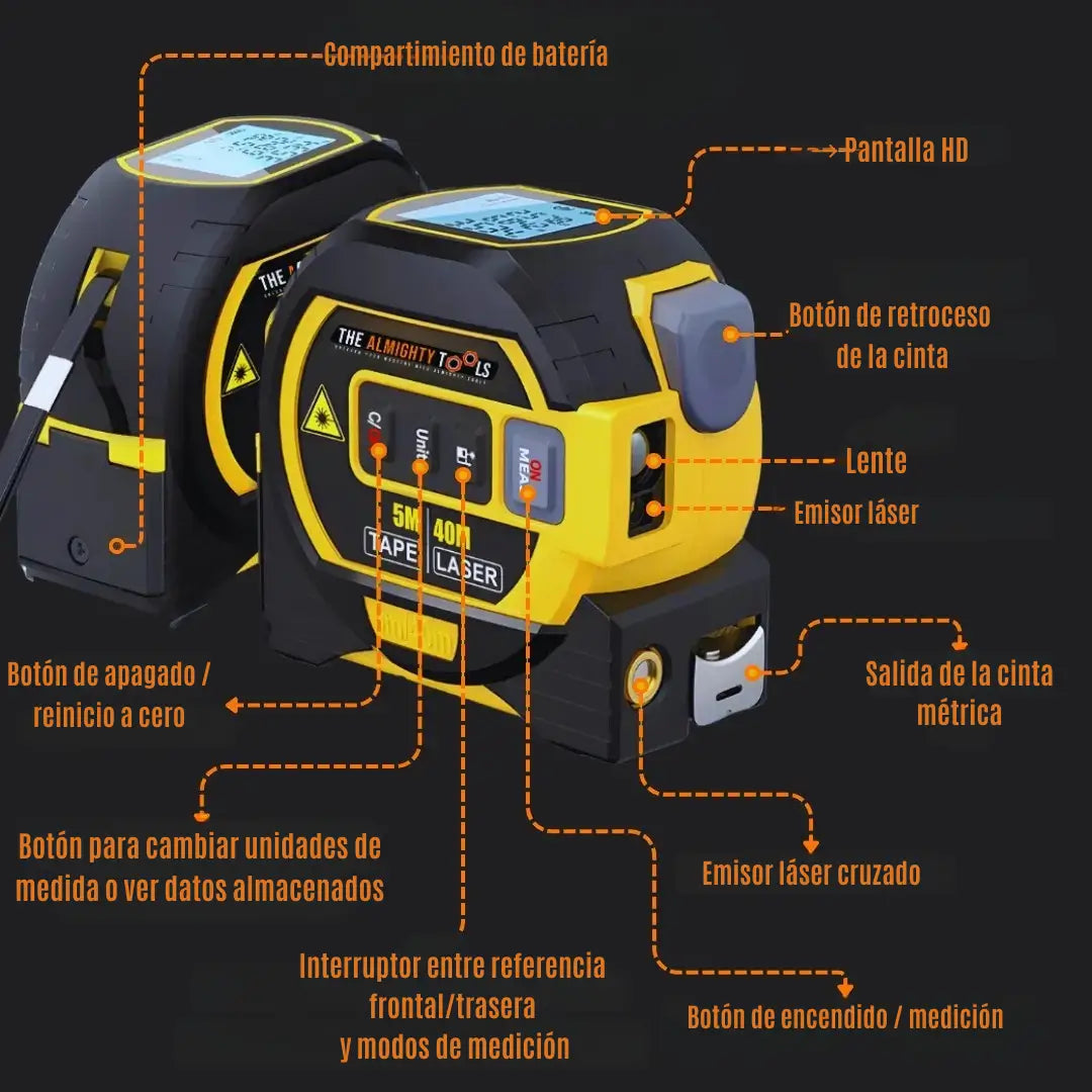 Versatilidad 3-en-1: integra cinta métrica + medición láser + marcado cruzado.